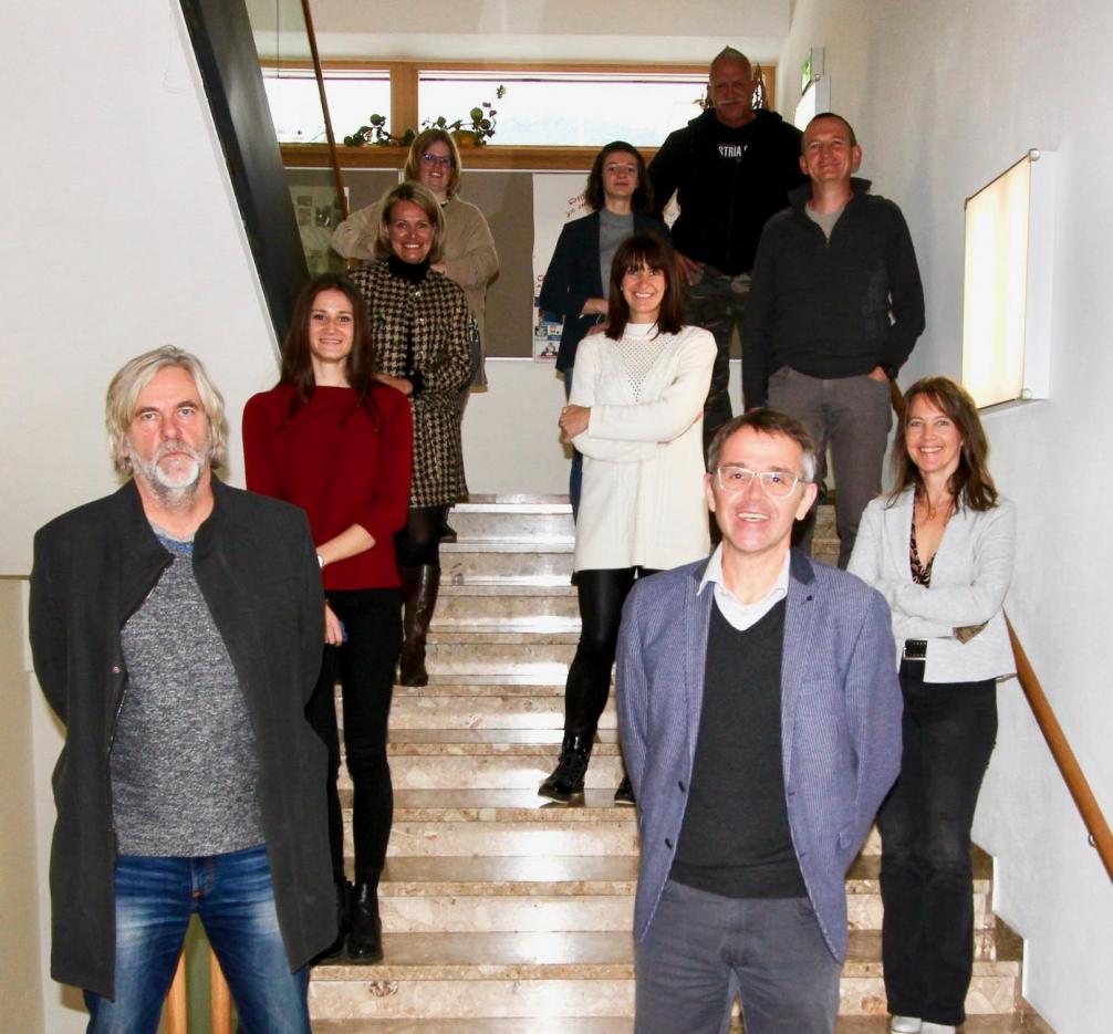 Schuljahr 2020/21: Direktor Richard Pohl mit seinem Team v.l.n.r.: Leiter-Stv. Rudolf Allinger, Iris Rataitz-Kiechl, Valentia Cuniolo, Maria Scheiber, Natascha Hofherr, Dietmar Mayer, Charlotte Antretter, Priska Wille, Markus Antretter